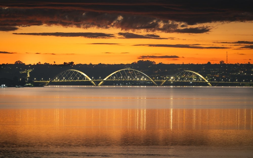 Ao fim do dia, o Lago Paranoá vira cenário para um pôr do sol bonito e tranquilo. É uma viagem curta, mas rica em significado.